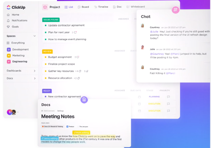 “One app to replace them all. All of your work in one place: Tasks, Docs, Chat, Goals, & more.”You can manage your entire team using Click Up, obtain reports,